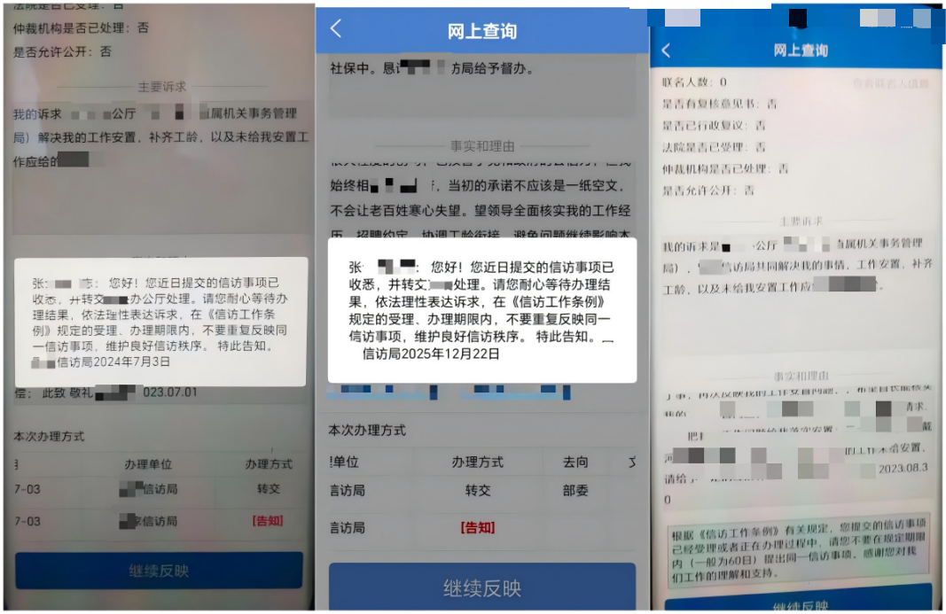 为推动问题解决,张某伟多次通过信访部门提交书面诉求,相关信访事项按流程转至对应部门办理。截至目前,张某伟仍待相关部门的正式书面答复与解决方案。