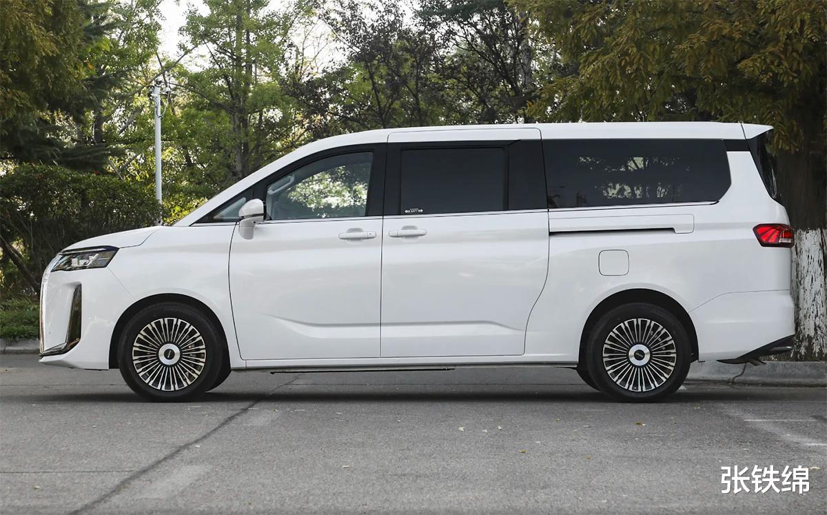 车身侧面部分的整体轮廓和锐胜M7基本一致,整体造型很方正硬朗,车身腰线很舒展,车门下部还有雕刻线条的筋线装饰。新车使用了双侧侧滑门结构,新的后视镜造型更为别致,全新的多幅式轮毂有着不错的档次感。尺寸方面,新车的长宽高分别为5317×1870×1955mm,轴距为3200mm。