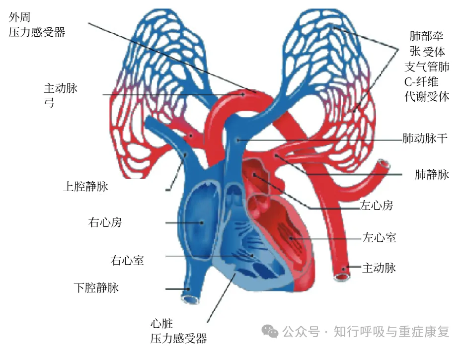 1)胸内压波动的直接作用:COPD患者存在显著胸腔内压波动(辅助肌、腹肌过度参与),这种波动会传导至心脏及大血管,直接改变外周压力感受器的敏感性,同时影响心脏泵血性能与系统性血压;血压变化又会诱发胸内外压力感受器介导的心率补偿性调节,形成连锁反应。