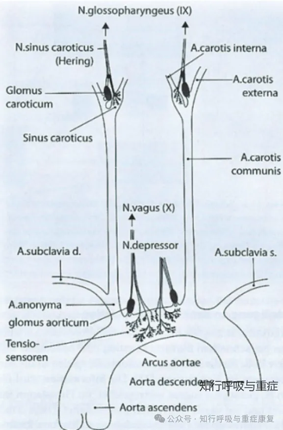 2)异常呼吸与跨壁压干扰:患者异常呼吸模式会增大主动脉跨壁压梯度,进一步干扰胸腔内压力感受器功能;即便健康人,阻力性负荷呼吸也会激活主动脉压力感受器、改变自主神经活动,可见呼吸相关机械变化对压力感受器的影响具有普遍性。