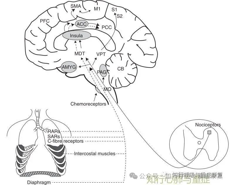 在健康个体中,它还可能调控全身血管张力与心脏自主神经功能,其介导的经典生理反射为Hering–Breuer 反射(HBR)— 正常呼吸时,肺组织充分扩张会激活肺牵张感受器,进而抑制吸气、启动呼气,并降低副交感神经输出,维持呼吸节律稳定,这部分内容在公众号往期文章中已有整理→第134期 呼吸的神经反射调节与化学调节