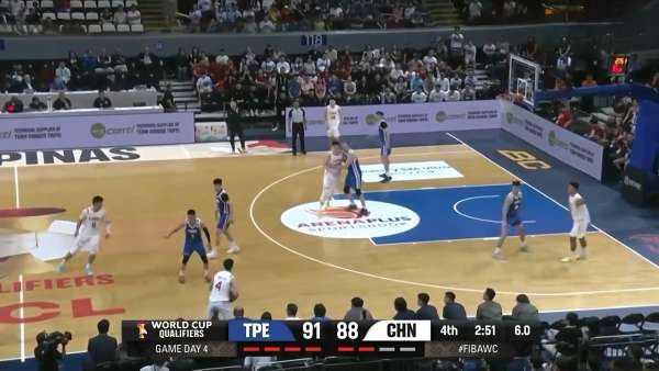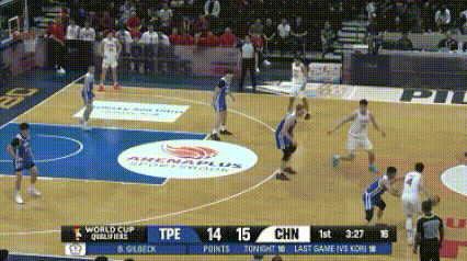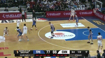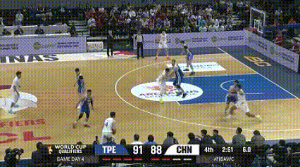 中国男篮对阵中国台北,前三节中国男篮一直落后,最多时落后11分,直到后半段才把比分追上来。打到2分51秒时,中国男篮还以88-91落后3分,进攻时间只剩下6秒,赵继伟发边线球。从球员站位看得出,来接应的有两个,一是胡金秋,二是贺希宁。