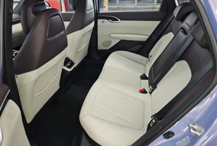 三幅式多功能方向盘造型别致,两边按键采用钢琴烤漆工艺涂镀,兼顾美感和实用性,中控屏UI设计符合主流新能源风格,功能图标直观易读,值得好评的是,屏幕下方保留了传统的空调物理实体控制按键,并且副仪表台的布局简洁实用,整合了手机无线充电模块和饱满的电子挡把,优化了座舱的便捷操作体验。不过,如果能将电子挡把更换为电子怀挡设计,那么前排的空间感会更开阔。