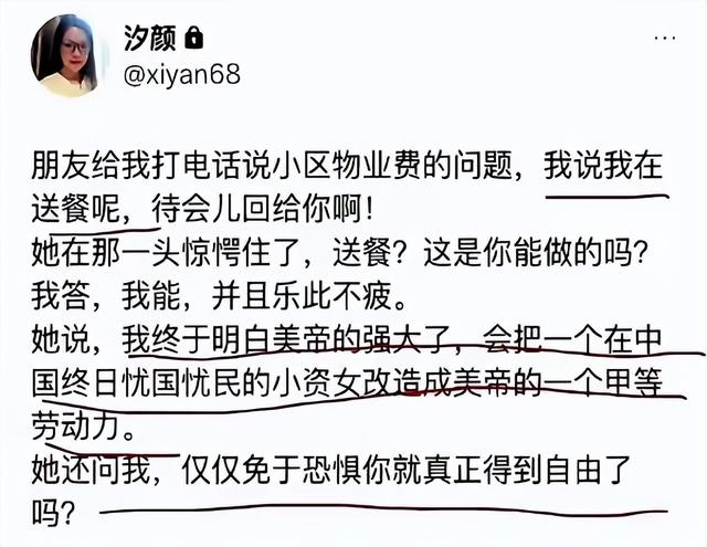 当一个人不想承认自己错误的时候,最好的办法就是用一个借口麻痹自己,比如把外卖员称为甲等劳动力;不“恐惧”就是自由...........