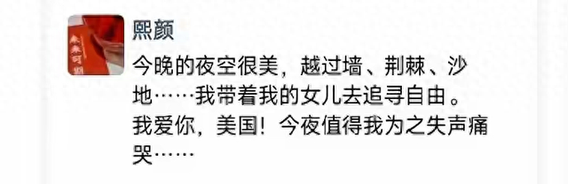 今晚的夜空很美,越过墙、荆棘、沙地……·我带着我的女儿去追寻自由。我爱你,美国! 今夜值得我为之失声痛哭…...