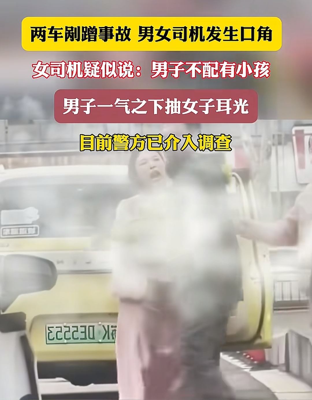 其实说来简单,原本只是一起两辆车发生轻微剐蹭的小事故,可惜当事人均未能合理控制好情绪,直接把事情闹大了。