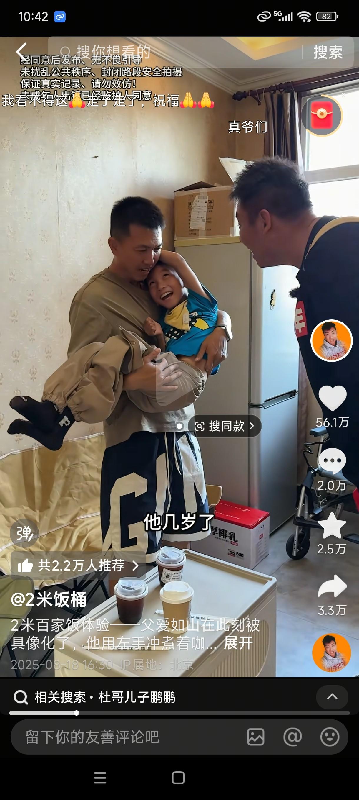 在2米饭桶接到咖啡大哥信息后,他提着水果兴冲冲地来到杜哥家里。刚进门,就听到孩子的哭声,忙关心询问原因。