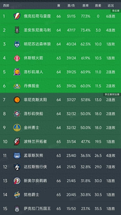 北京时间3月10日,今日的NBA常规赛结束了所有比赛,我们看看西部的最新排名!主要的战况是雷霆129-126绝杀掘金,勇士116-119憾负爵士,快船126-118掀翻尼克斯,灰熊115-123不敌篮网!
