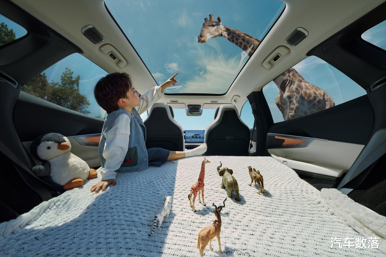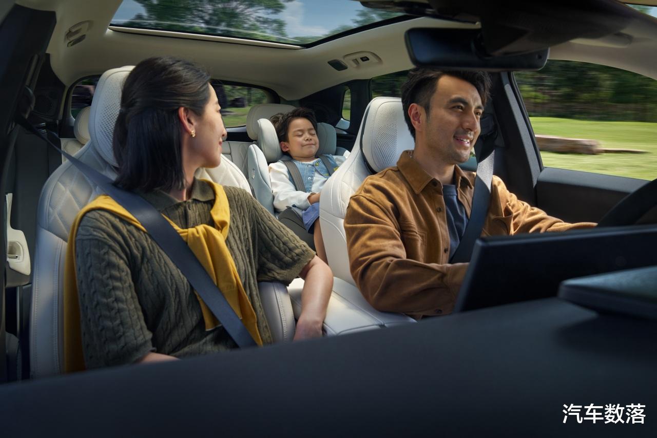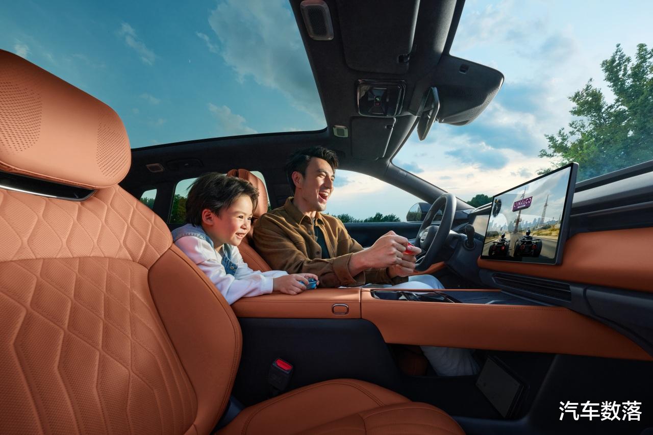 车内采用“四座平权”理念,后排纵向空间近1300mm,身高110cm的小朋友可在车内直立行走;Nappa真皮座椅采用Ansole抗污技术,解决了座椅不易清洁的用车痛点;四座均支持通风、加热、按摩功能,前排副驾有腿托及10向电动调节,后排靠背可118°-129°电动无级调节。此外还配备了7L双开门冷暖控温冰箱、二排小桌板、哈曼卡顿23扬豪华音响、全景天幕及35处储物空间。