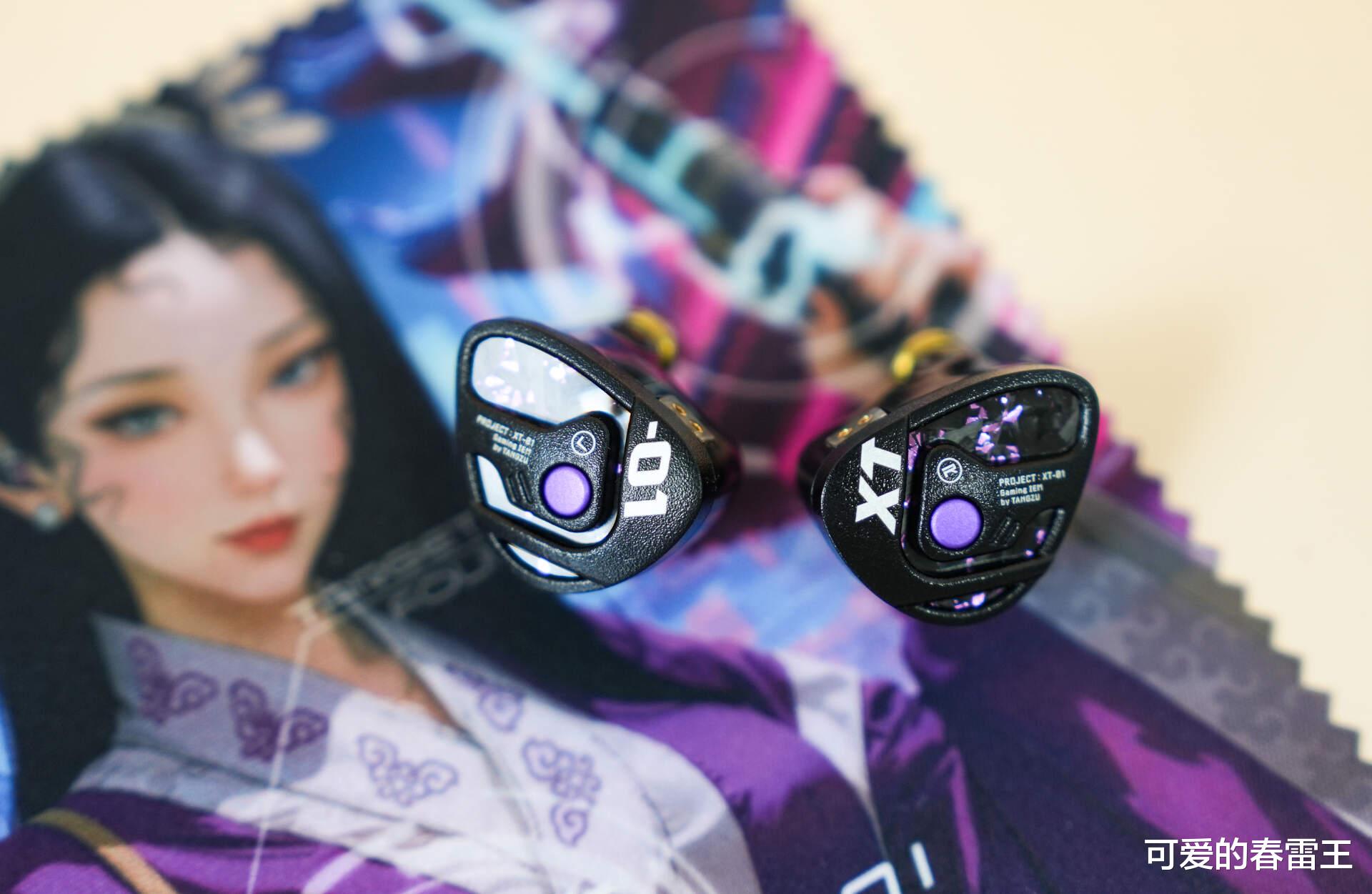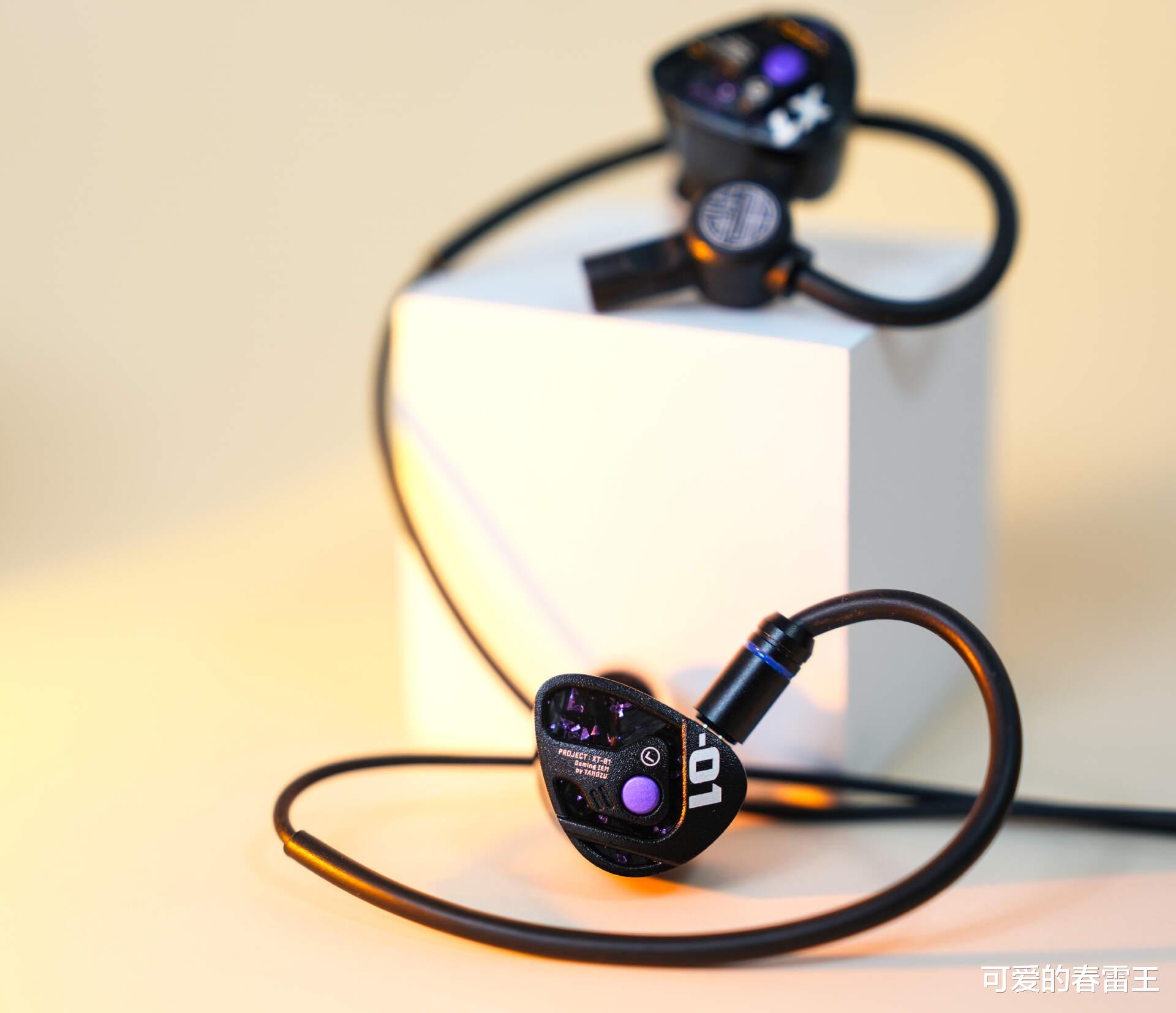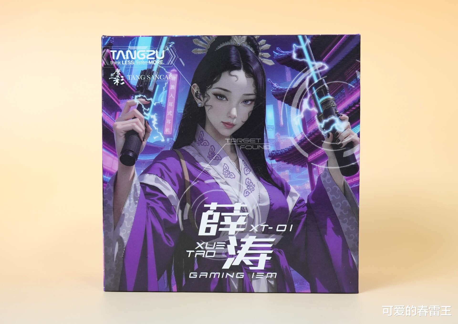 轻微颜控的我,想当初看到薛涛的包装,简直是欢喜的紧,整个就是二次元封面的,全紫色的薛涛女神盒子,当时那种心动感现在我都还记得,拆开盒子,耳机腔体也特别好看,黑色调为主,中心紫色圆点点睛,机甲风设计真的超有爱,游戏感十足。