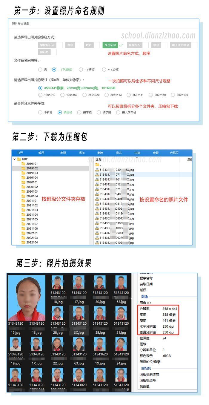 照片文件以身份证号命名(需与学籍网中身份证件号一致),应按学校标识码_学校名称分文件夹存储。