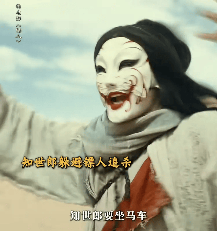 可要说知世郎重要,他的戏份却不算厚重,更特别的是,这个角色全程戴着面具——出场时戴着,坐在马车里戴着,哪怕是遭遇追杀、狼狈逃窜时,也从未摘下过,直到影片落幕,观众都没能看清他的脸。