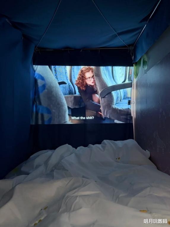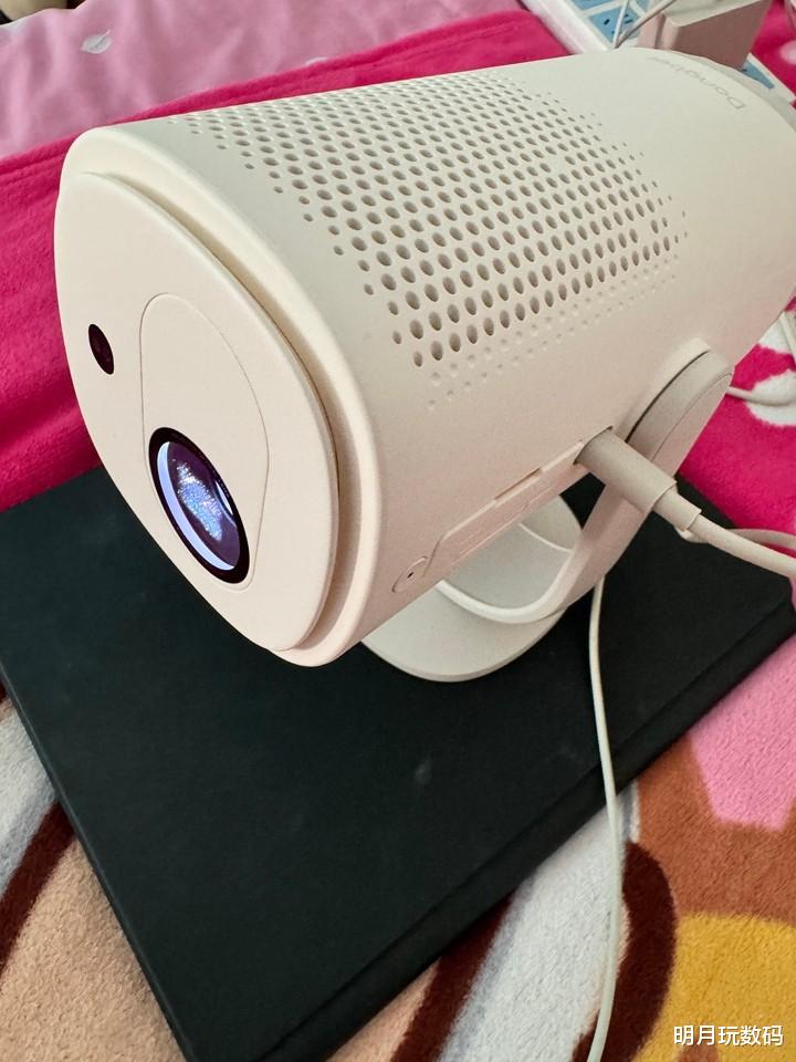 更亮眼的是其240°一体式云台设计,普通大学生宿舍投影仪需垫书、调支架找角度,而它单手就能调节投射方向,正投墙面、侧投书桌、垂直投天花板皆可轻松实现。冬天躲在被窝里,无需起身就能投屏到头顶,沉浸式观影体验拉满。