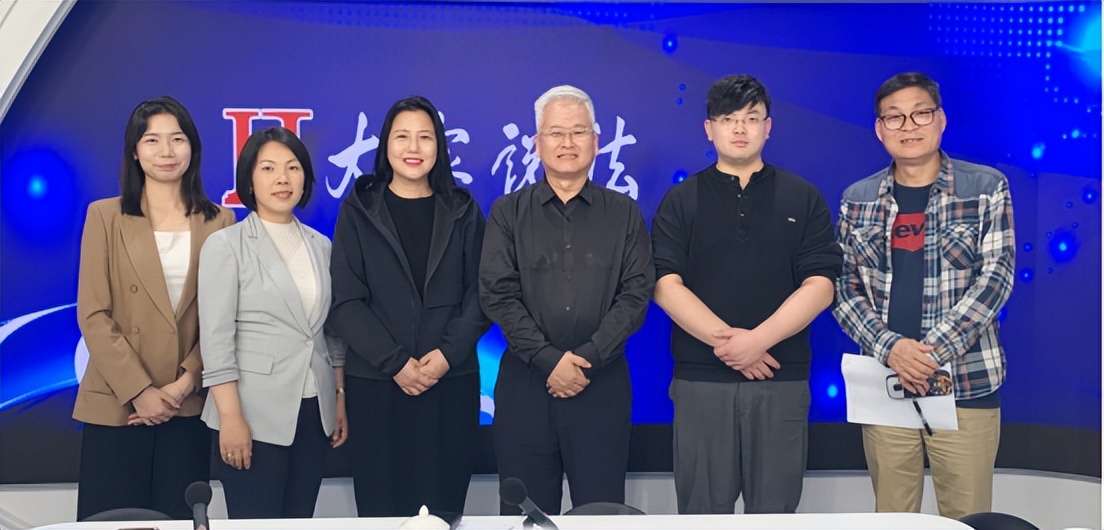 左起:主持人张卓、律师李晓震、总制片人张永红、心理学家刘明、编导黄瑞海、总导演赵玉祝