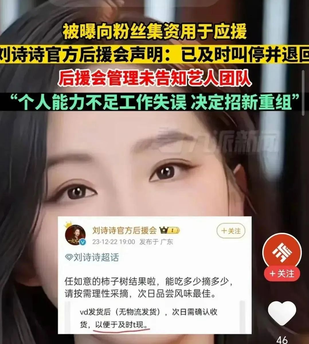 据了解,事情的经过是,刘诗诗的后援会粉丝,在没通知艺人的情况下,私自以刘诗诗新剧角色任如意的名号非法集资。“任如意已如柿子一样成熟,可被采摘,并附上链接,当中注明:无物流发货,日次需确认收货。”这项虚拟商品的价格也在4位数到5位数不等。