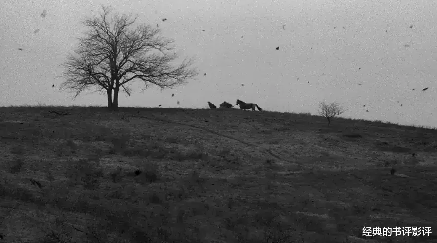 尼采抱马痛哭后发疯,电影就拍这匹马后续的故事:老汉和女儿在狂风中挣扎生存,重复吃土豆、搬柴火、被风吹到怀疑人生。