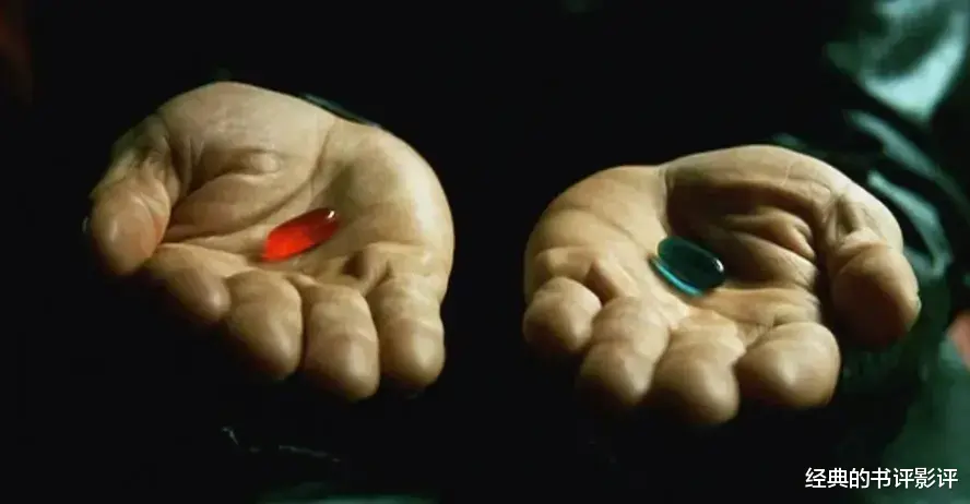 尼奥吞下红色药丸,从代码世界惊醒,发现人类只是电池,现实全是虚拟投影。