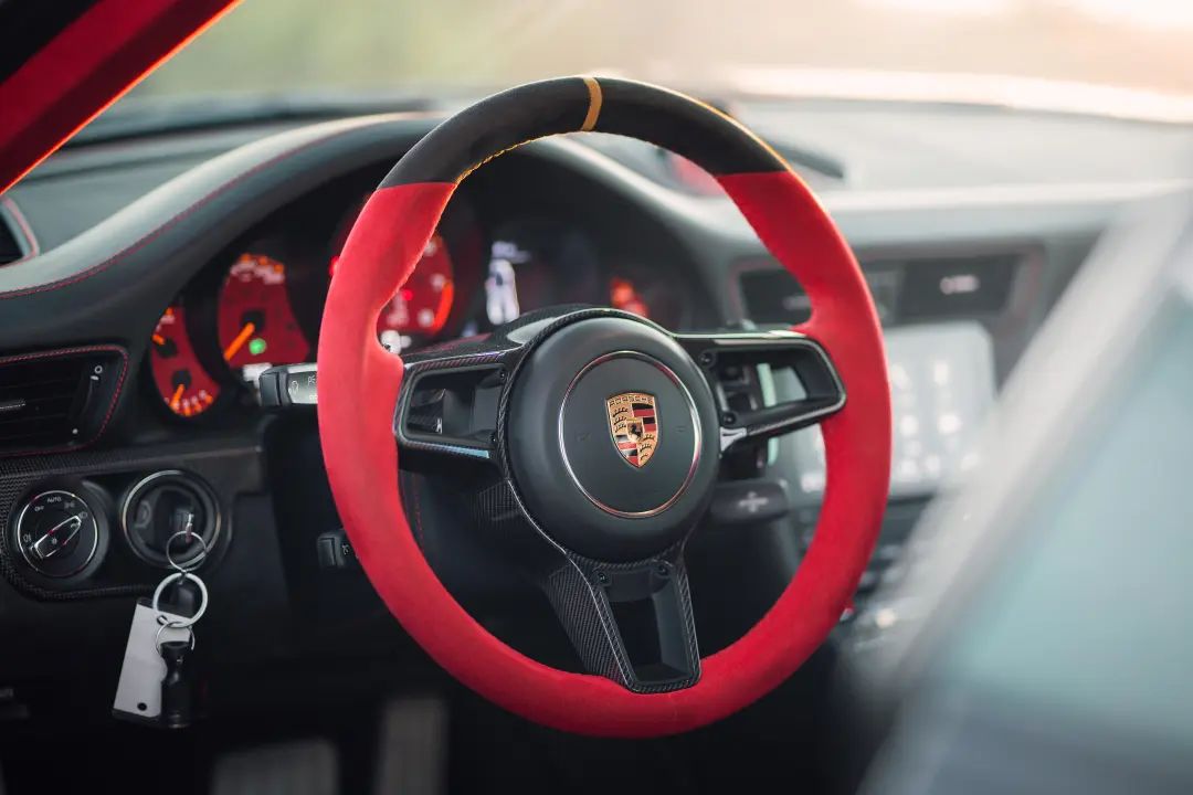 这辆GT2 RS还配备了备受欢迎的Weissach套件,通过碳纤维和钛合金部件、镁合金BBS中央锁紧轮毂以及集成的钛合金防滚架,进一步减轻了30公斤的重量。