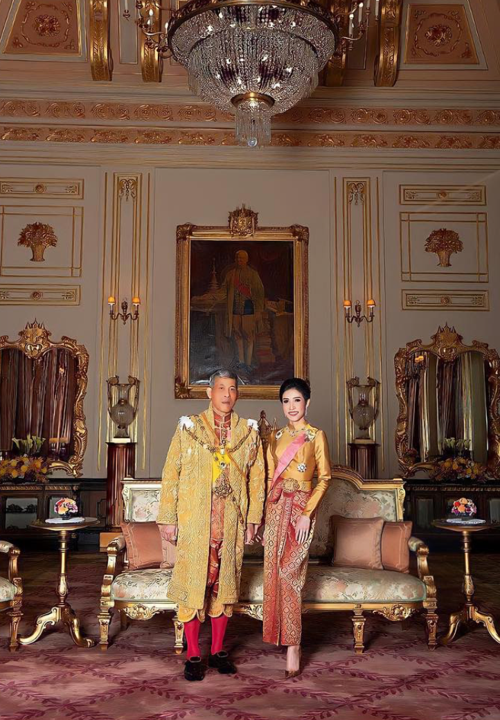那之后,诗妮娜重回泰国,和泰王又重修旧好,到处以cp人设参加官方活动,王后苏提达又只有坐冷板凳的份了…