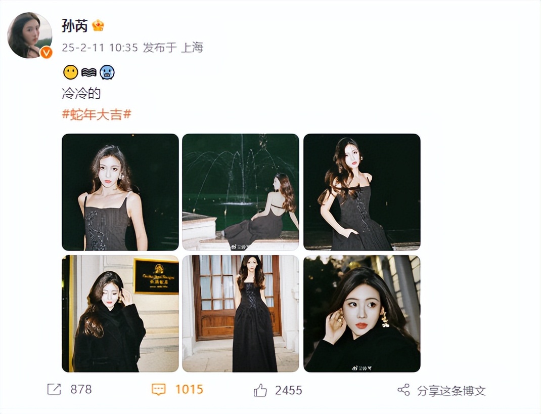 虽然当天很冷,但丝毫没有影响孙芮的热情,她脱掉外套厚,穿上了一条黑色的连衣裙,搭配简洁的配饰,瞬间就呈现出了与众不同的成熟魅力。