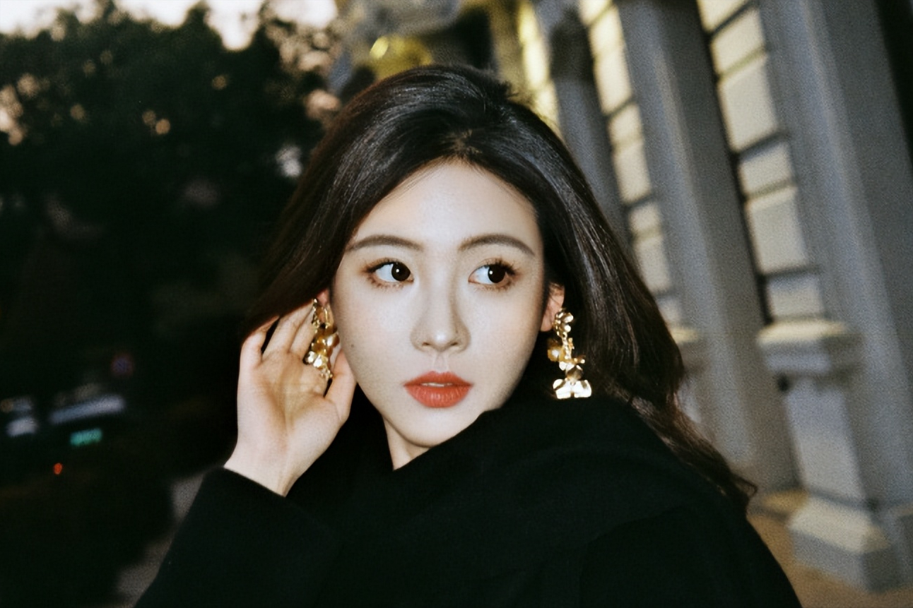 耳环的设计独特而奢华,吸引了人们的目光,完美衬托了她清新脱俗的面容。孙芮的五官极具辨识度,眼神深邃而迷人,嘴角轻轻上扬的弧度让人感到温暖又亲切。这些细节的展现,让她的照片更加有了生命力。