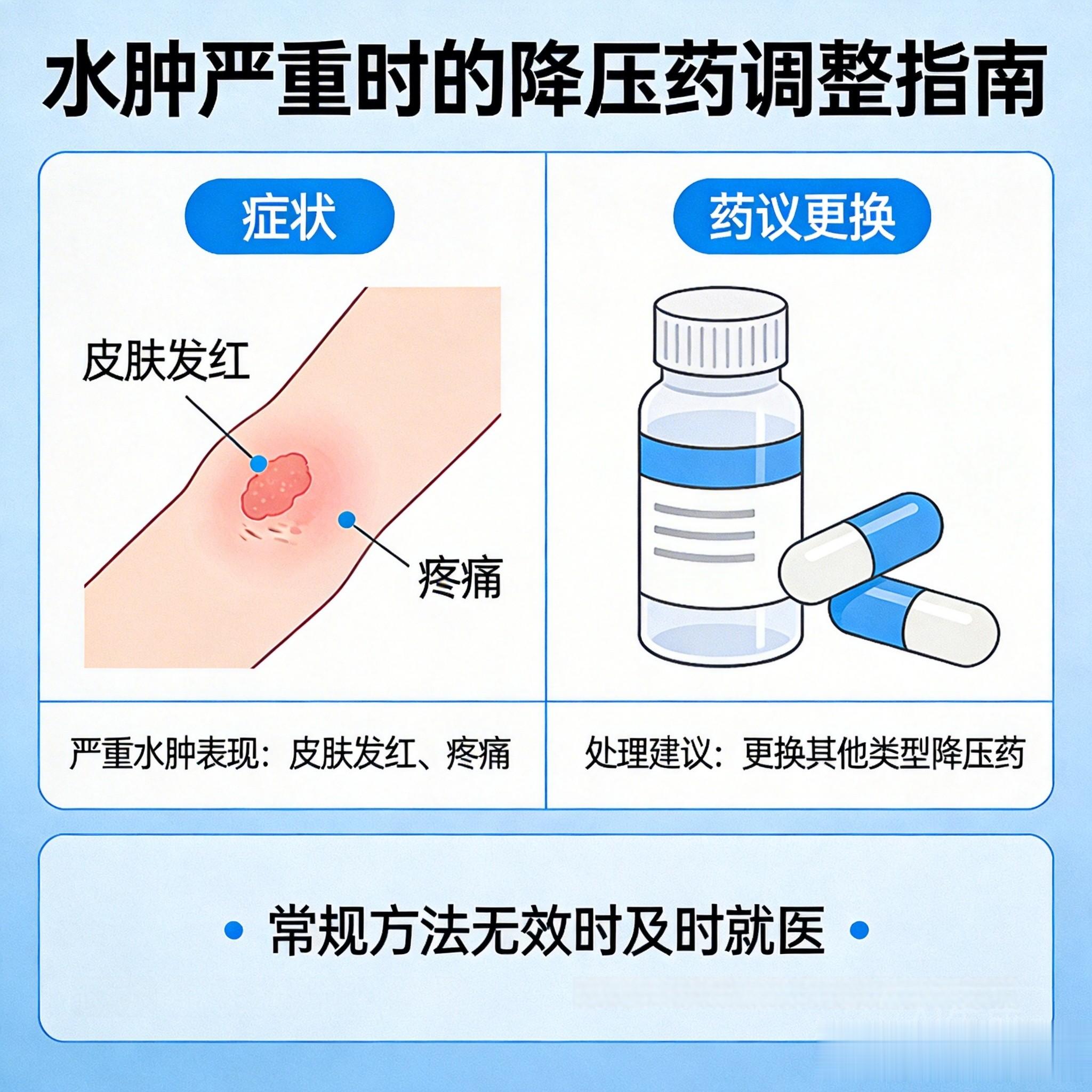 如果水肿确实非常严重,甚至出现了皮肤发红、疼痛,或者上述方法都不管用,那就别硬撑了。赶紧换个药物,换成其他类型的降压药,问题往往迎刃而解。