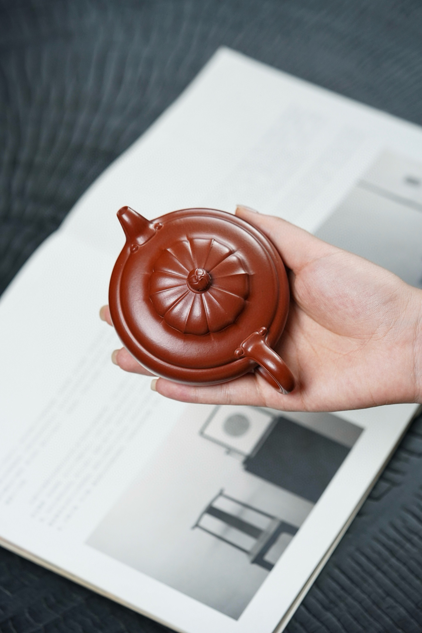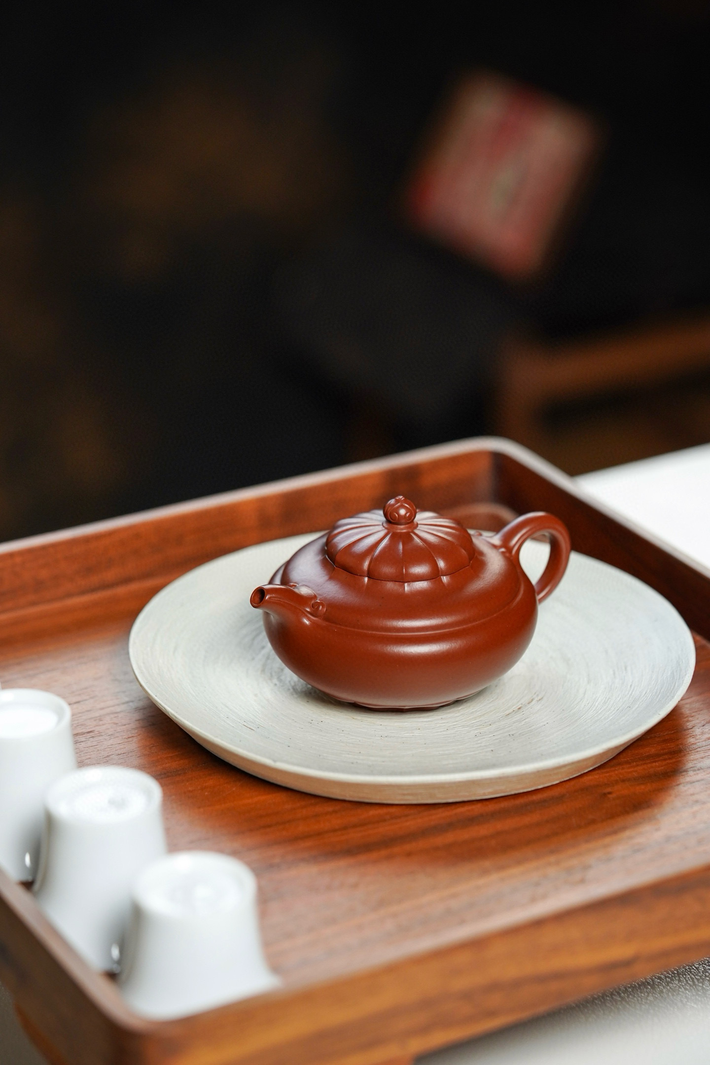 实物辨析:顶级朱泥的“大红袍”特征现代工艺中,朱泥因含铁量高、收缩率大(达30%以上),极难成型,故顶级朱泥壶本就稀少。若以“大红袍”指代其中最精良者,需满足几个条件:泥料需经多次陈腐(至少三年以上),胎质细腻无颗粒感;烧成温度严格控制在1080-1120℃,呈“橘皮纹”包浆而非“玻璃光”;敲击声清越但不尖锐(普通朱泥因收缩率高易有“惊纹”)。这类朱泥壶确实存在,例如顾景舟先生晚年曾用一批陈腐数十年的赵庄朱泥制壶,泥色沉稳如枣红,被藏家称为“当代大红袍”。