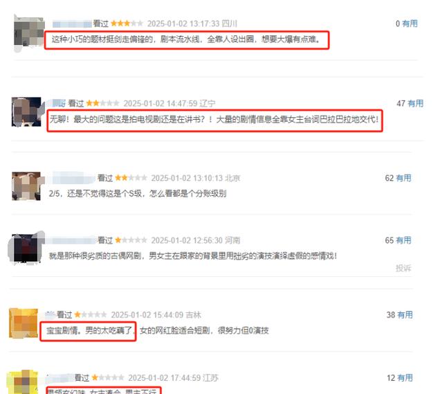 还有的在说:这部剧男女主不符,女主像是演网红短剧,虽然很努力,但0演技。