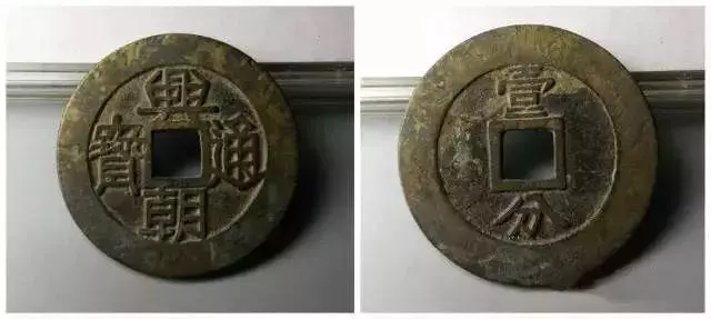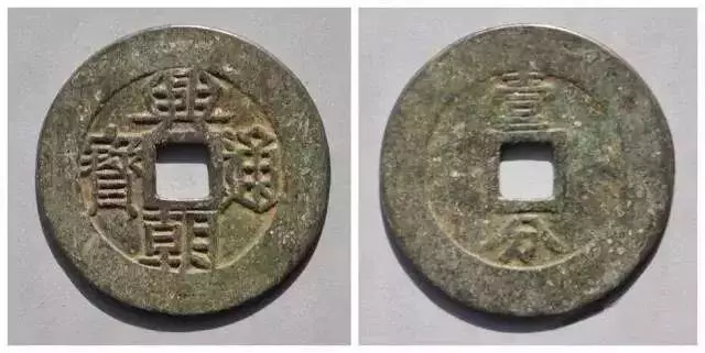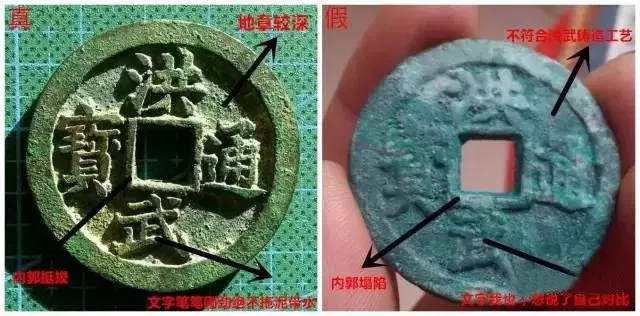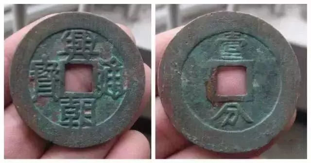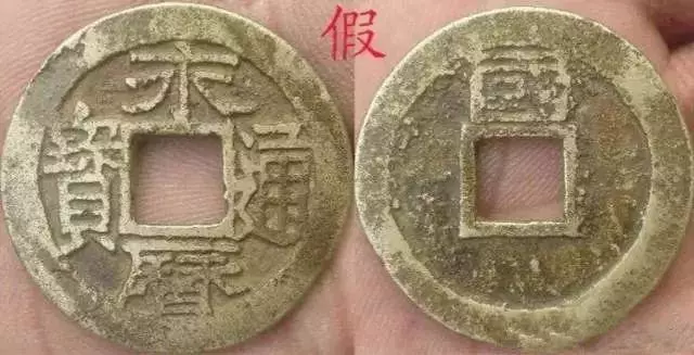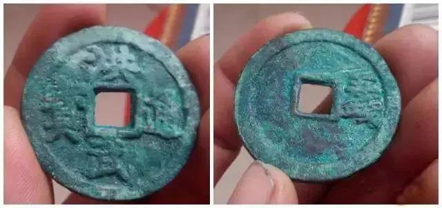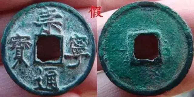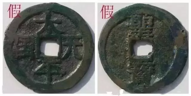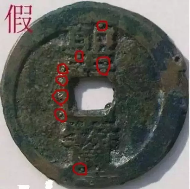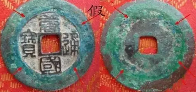 这个是伪品! 1、铸造工艺不符合。 2、面字口生硬,背廓、穿生硬,无流通痕迹,穿口还有毛刺未去除 3、化学试剂咬出的锈色,肤浅。