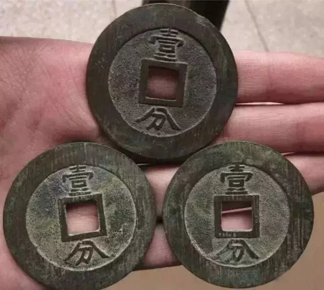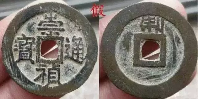 ps:这是全镶圈,还有半镶圈,就是将一普通小平钱割去外轮,同时磨到原钱一半厚,取折二或折三钱磨去正面除钱廓以外一半钱肉,将磨好的小平嵌入,这样折二或折三钱背是原背,只要正面做上假锈就行了。这中破绽同上,声音要比上一种好点,但是钱背是其最大破绽。