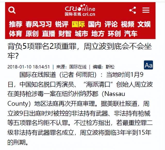 背负5项罪名2项重罪,周立波到底会不会坐牢?——国际在线
