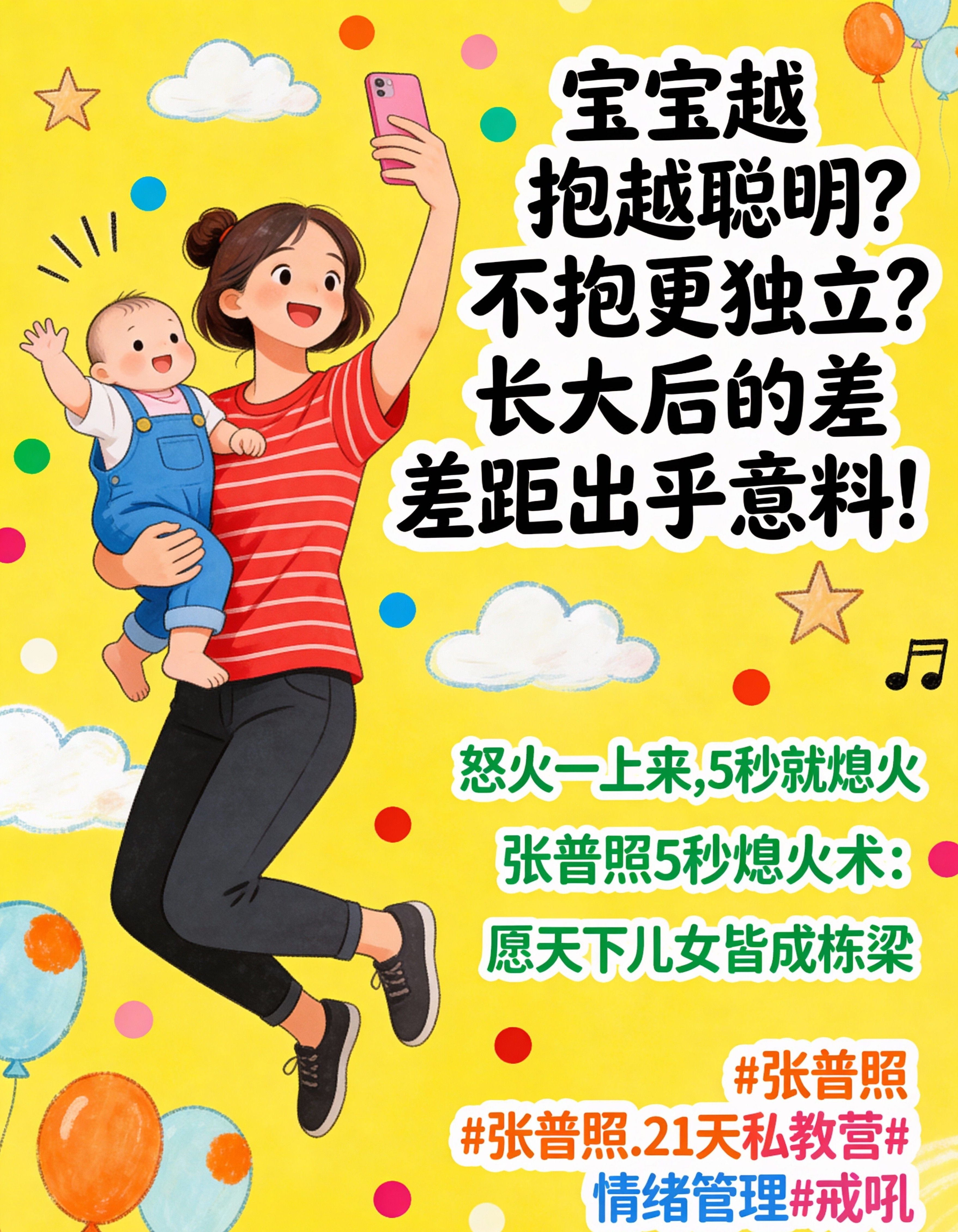 张普照5秒熄火术,就是你从 “被哭声控制的崩溃妈妈”(他哭,你炸) 觉醒为 “情绪安宁的定海妈妈”(你稳,他安) ,从而跨越“抱与不抱”的浅滩、驶入育儿深海的唯一路径。这不再是关于“手臂劳累”的技术问题,而是关于 “你如何先成为一个内心强大、情绪稳定的自己,从而给予孩子超越一切技巧的、最珍贵的礼物——一个情绪健康的妈妈” 的根本觉醒。这条路,就从你下次想崩溃时,练习那救命的5秒开始。