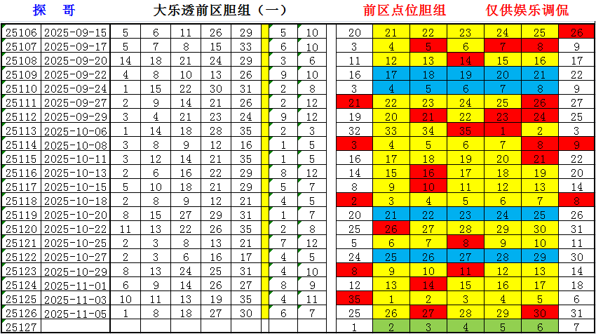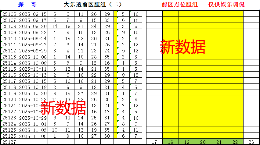 自大乐透第127期开始,胆组二更换新数据,希各知照。