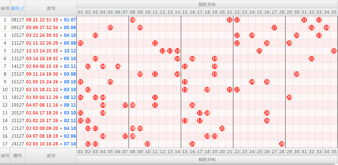 六、历史同期,前区开奖结果和走势图(历史数据演示):