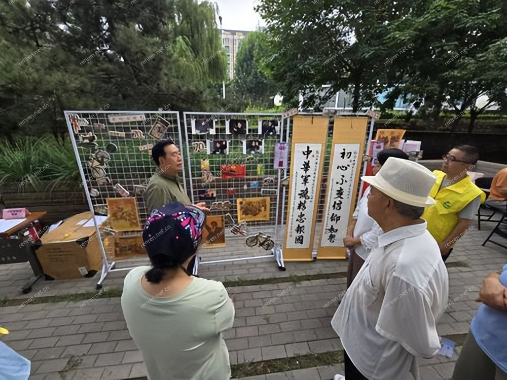 老物件展示:承载岁月故事,唤醒集体记忆。展示架上,老物件按“生活用具”“社区记忆”等类别分区陈列,老物件旁附有捐赠居民的姓名与简短故事介绍。居民刘云华带来庆祝新中国成立70周年画册、纪念中国人民解放军成立98周年字画等物件,并激动地跟大家分享自己的故事。居民武延年向大家介绍老照片中的1985年领导讲话,以及1997年东方大火现场情况,还有很多工作证件背后的故事。