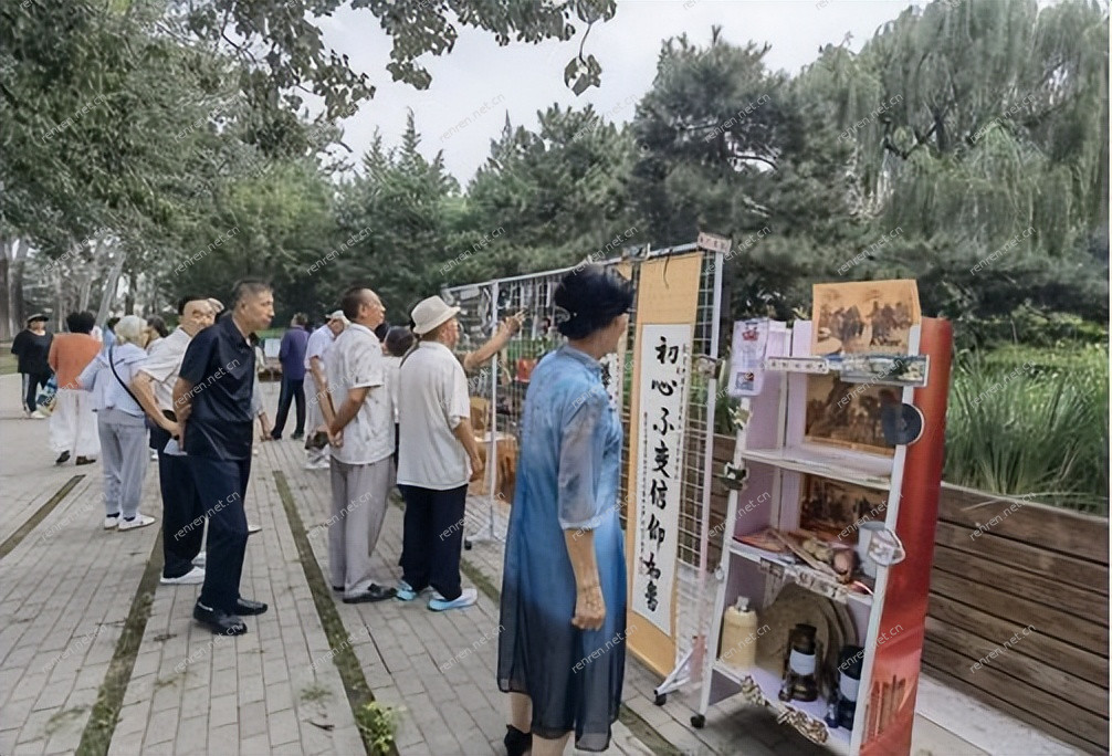 大家围在展示架前,或指着搪瓷碗、热水壶回忆过往的生活,或讨论用粮票那个年代的历史,或看着为人民服务的徽章讨论要更多的参加社区服务,大家的分享和讨论,让冰冷的物件成为串联邻里共同记忆的纽带。