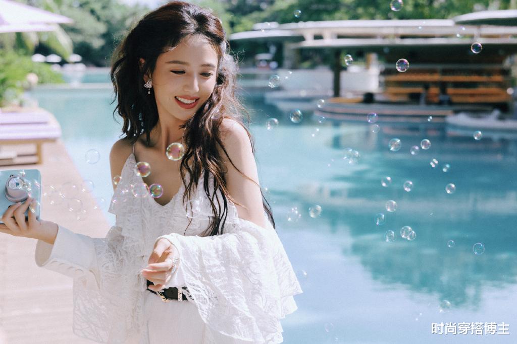 看,佟丽娅玩起泡泡机更像是梦幻中的仙女。