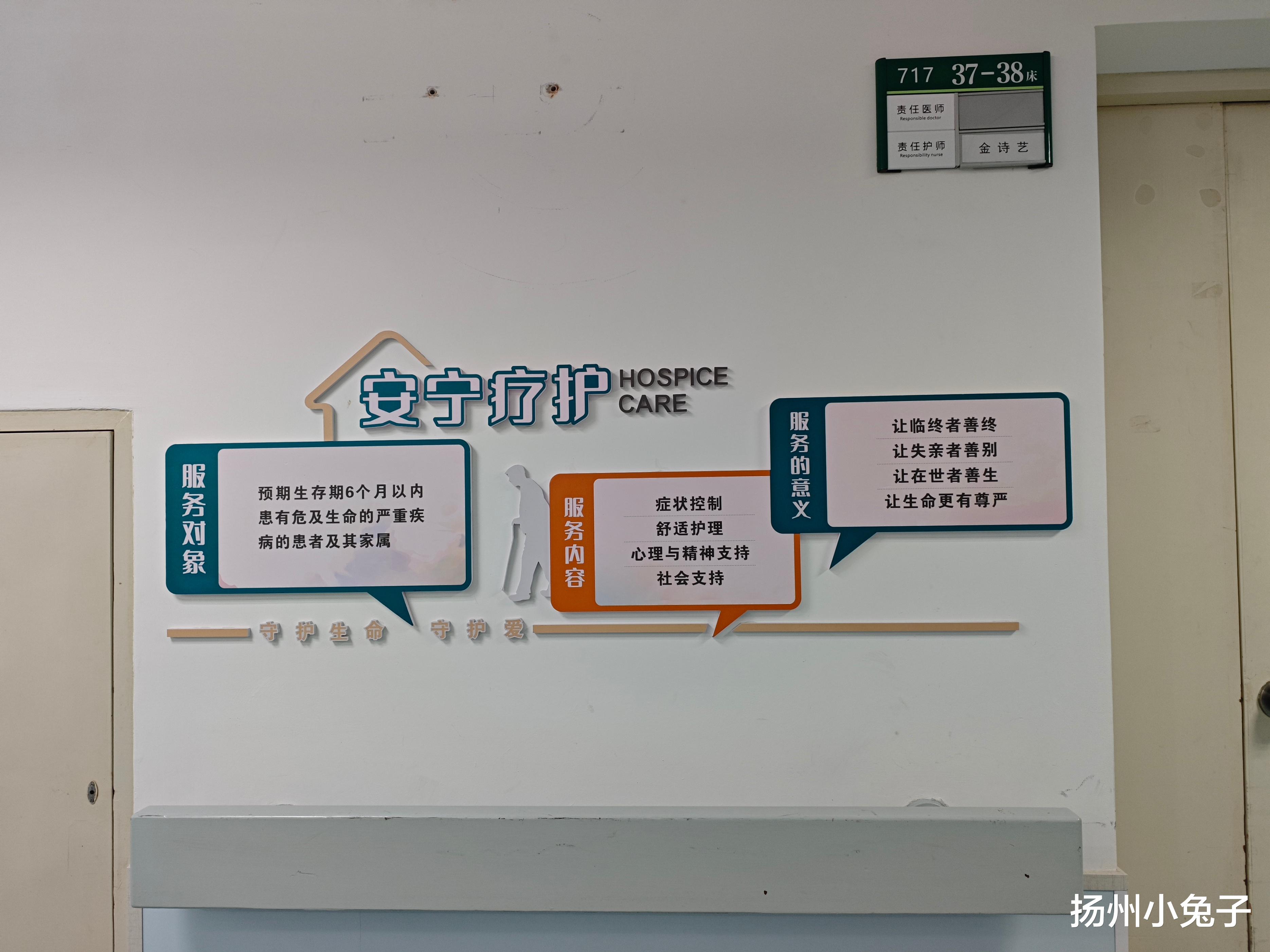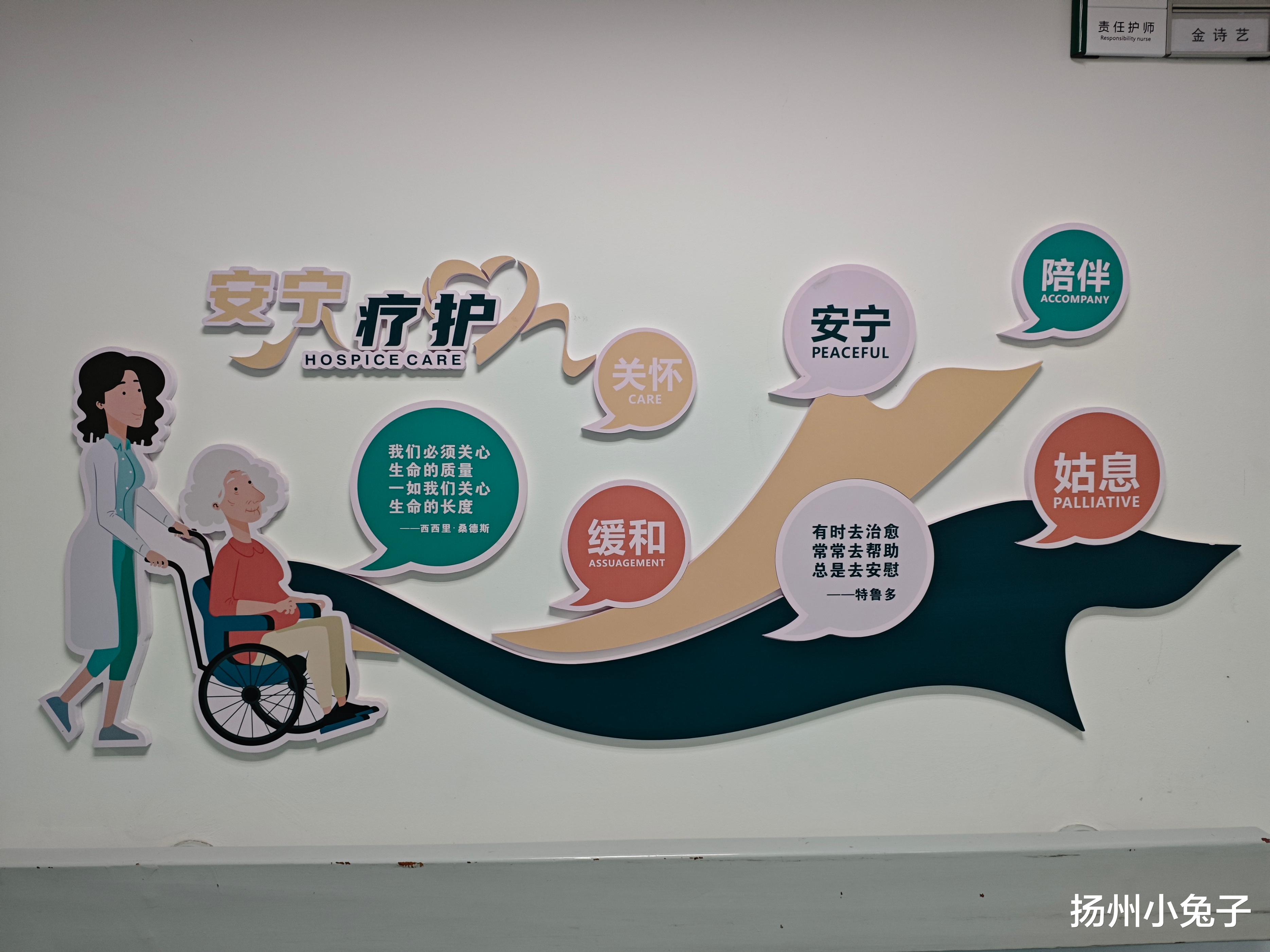 因为是偶然走进去,并不知道这层病房的功能。回到电梯里,特意关注了一下楼层的专业:老年病房、安宁病房!啊?这是传说中的安宁病房?