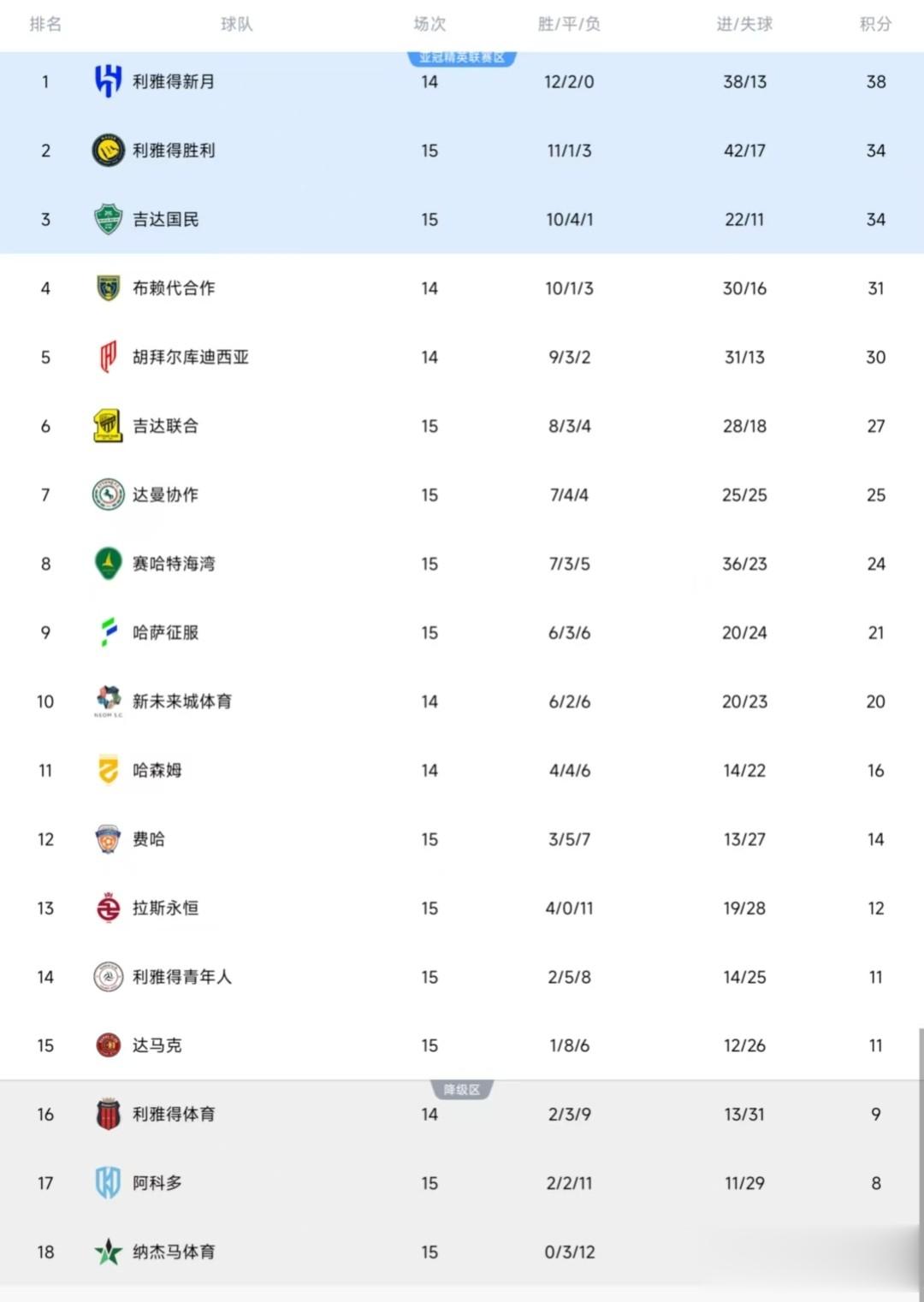 此外,吉达国民凭借伊万-托尼在下半场的进球,1:0战胜拉斯永恒。沙特联最新积分榜如下
