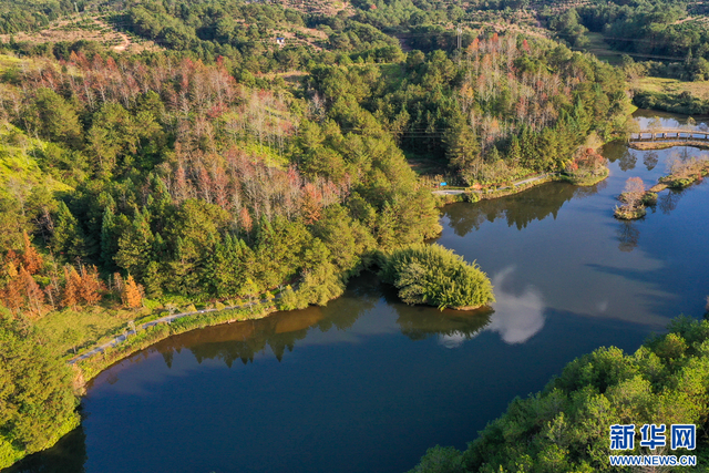 长汀县水土保持科教园地处河田镇露湖村,是福建省面积最大的水土保持科教基地(无人机照片)。新华网 肖和勇 摄