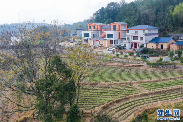 这是在长汀县河田镇南塘村拍摄到的美丽庭院与农田风光(无人机照片)。新华网 肖和勇 摄
