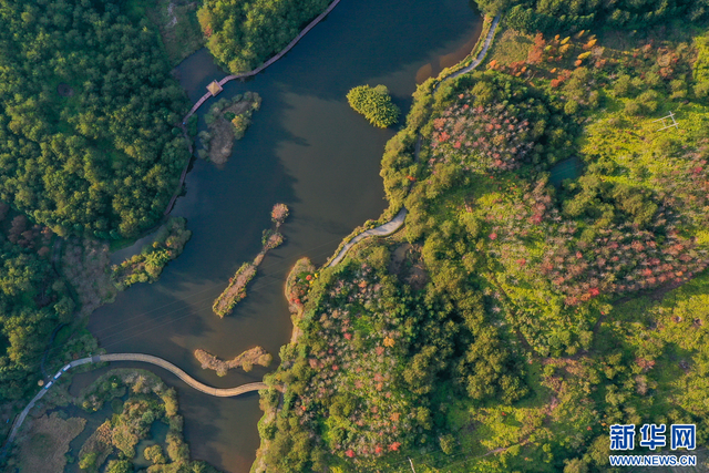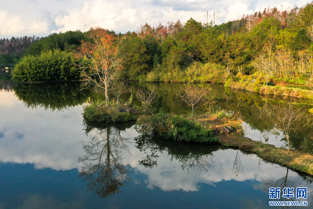 这是长汀汀江国家湿地公园冬日景观。如今这里是国家4A级旅游景区。经过30多年的生态治理,昔日水土流失重灾区已成为风光秀丽、林果连片的生态旅游胜地(无人机照片)。新华网 肖和勇 摄