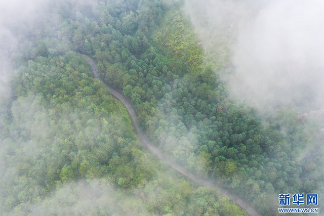 这是长汀县水土保持科教园附近拍摄到的生态景观。晨雾笼罩森林,宁静而美好(无人机照片)。新华网 肖和勇 摄