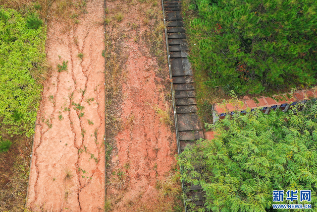 长汀县水土保持科教园里的崩岗实验对照区(无人机照片)。新华网 肖和勇 摄