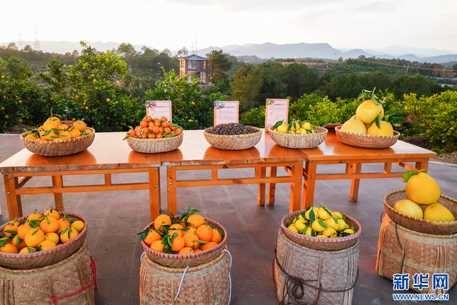 长汀县三洲镇丰盈美丽生态农场面积3200多亩,已种植36个果树品种,这是当季水果展示。新华网 肖和勇 摄