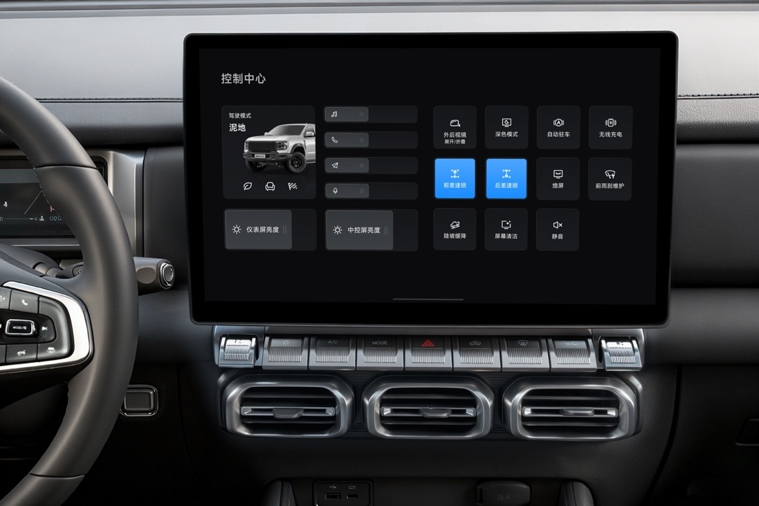 智能化层面,它彻底撕掉皮卡 “低智能” 标签。15.6 英寸中控屏 + 8155 芯片,搭配 L2 级智驾、360° 全景影像 + 透明底盘,支持双系统手机互联,座舱流畅度与科技感看齐主流乘用 SUV,越野与家用两不误,真正实现一车通吃全场景。