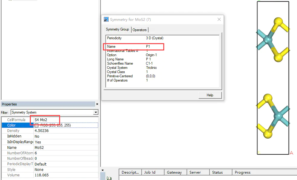 有时候我们得到的cif晶体结构是没有对称性的,如下图的MoS2结构。没有空间群信息我们就没有办法确定该结构是什么相的材料,到底是2H相的,还是1T相有或者是3R相。不过我们可以通过Materials Studio快速找导入结构的空间群信息,步骤如下:
