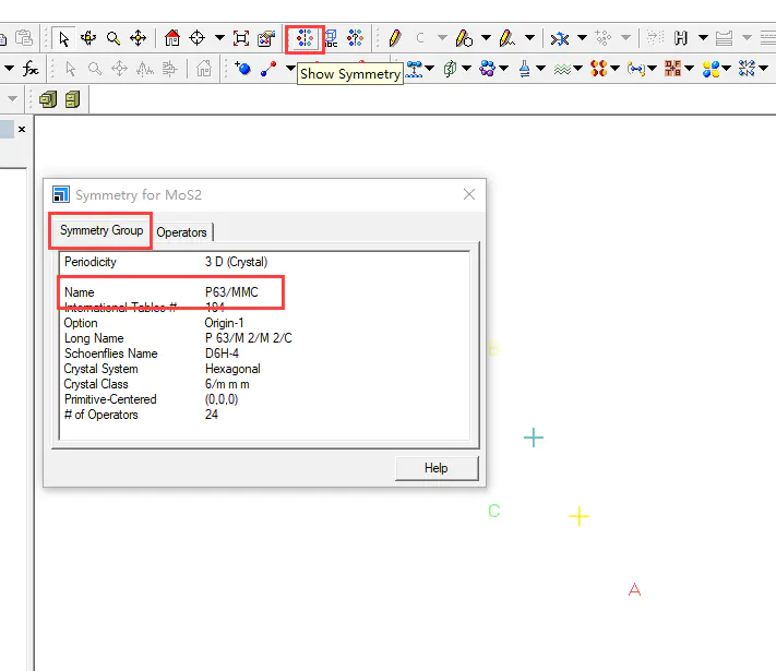 4.在快捷栏中找到Find Symmetry快速查看该结构的对称性信息。