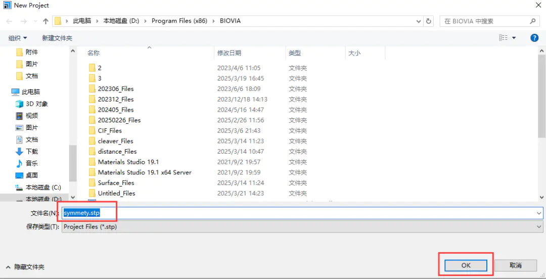 2.新建一个symmetry.stp的项目,并点击OK按钮。