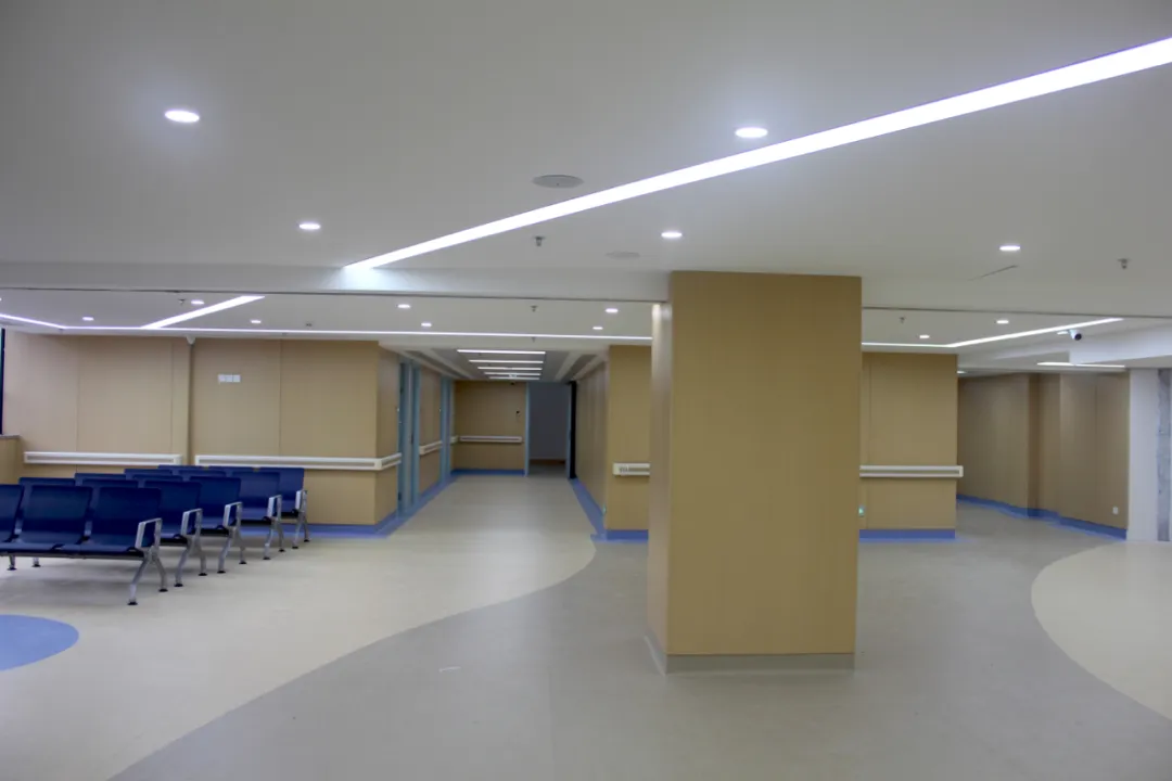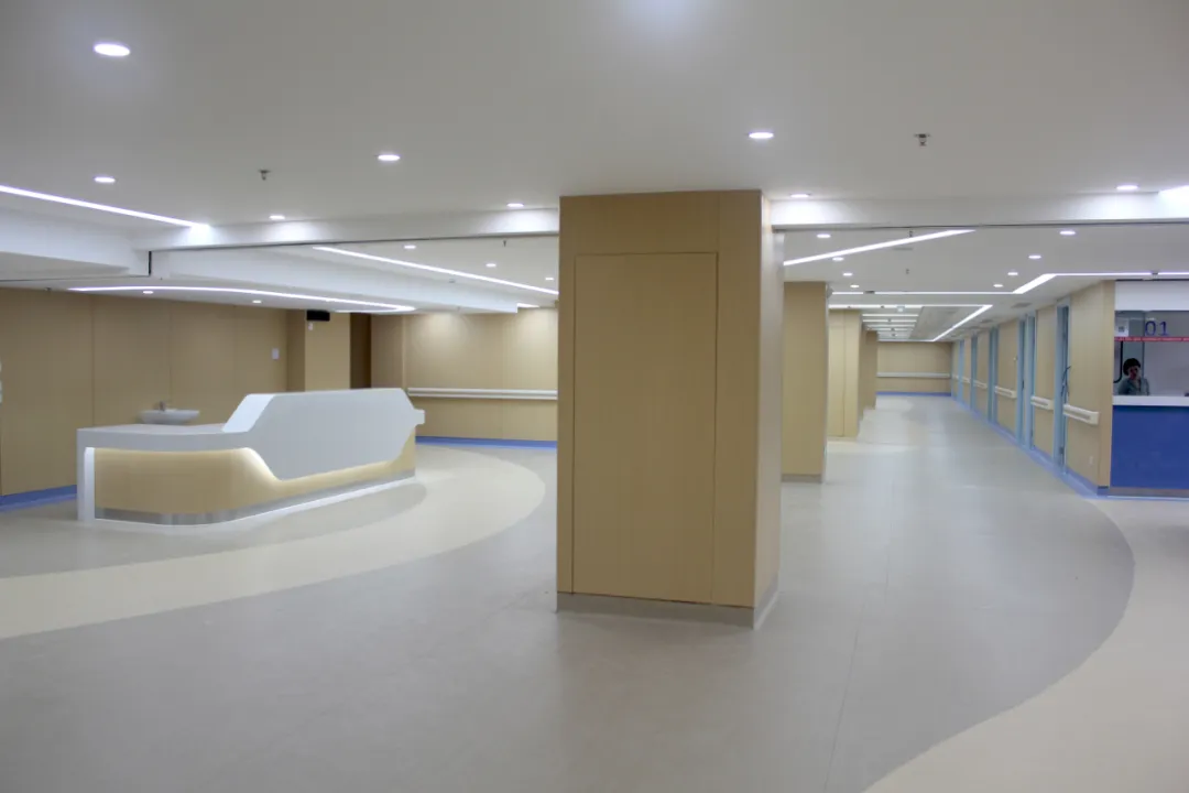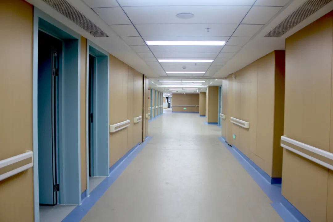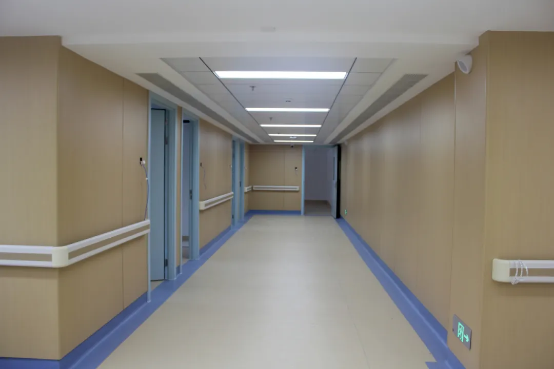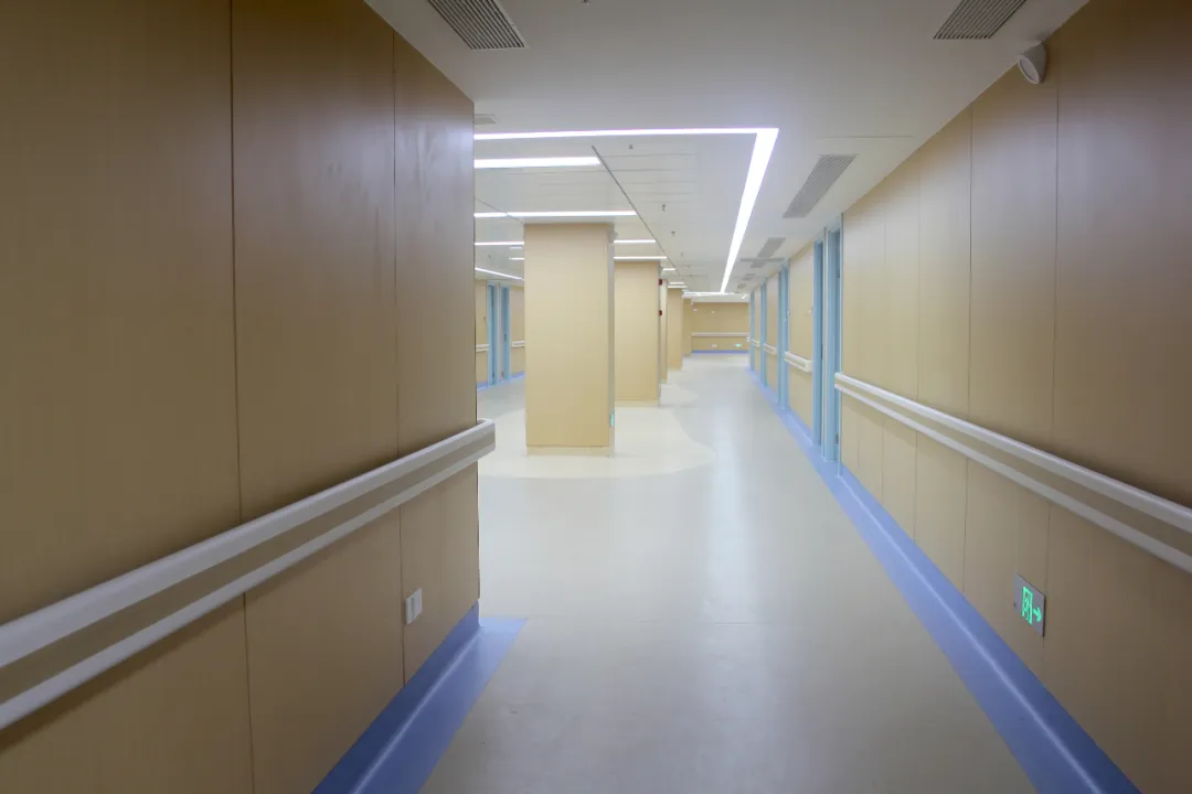 防撞扶手、圆角墙面,彰显以人为本的设计初心;地面采用防滑材质,在保障行走安全的同时,延续了整体空间的柔和质感。